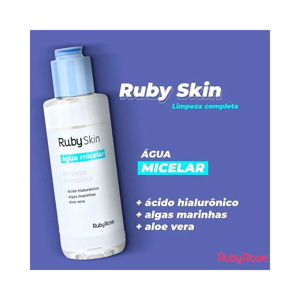 A Água Micelar Ruby Skin Limpeza Completa possui fórmula prática, suave e sem enxágue para a sua pele diariamente. Limpa, acalma, refresca e remove a maquiagem do rosto e olhos.