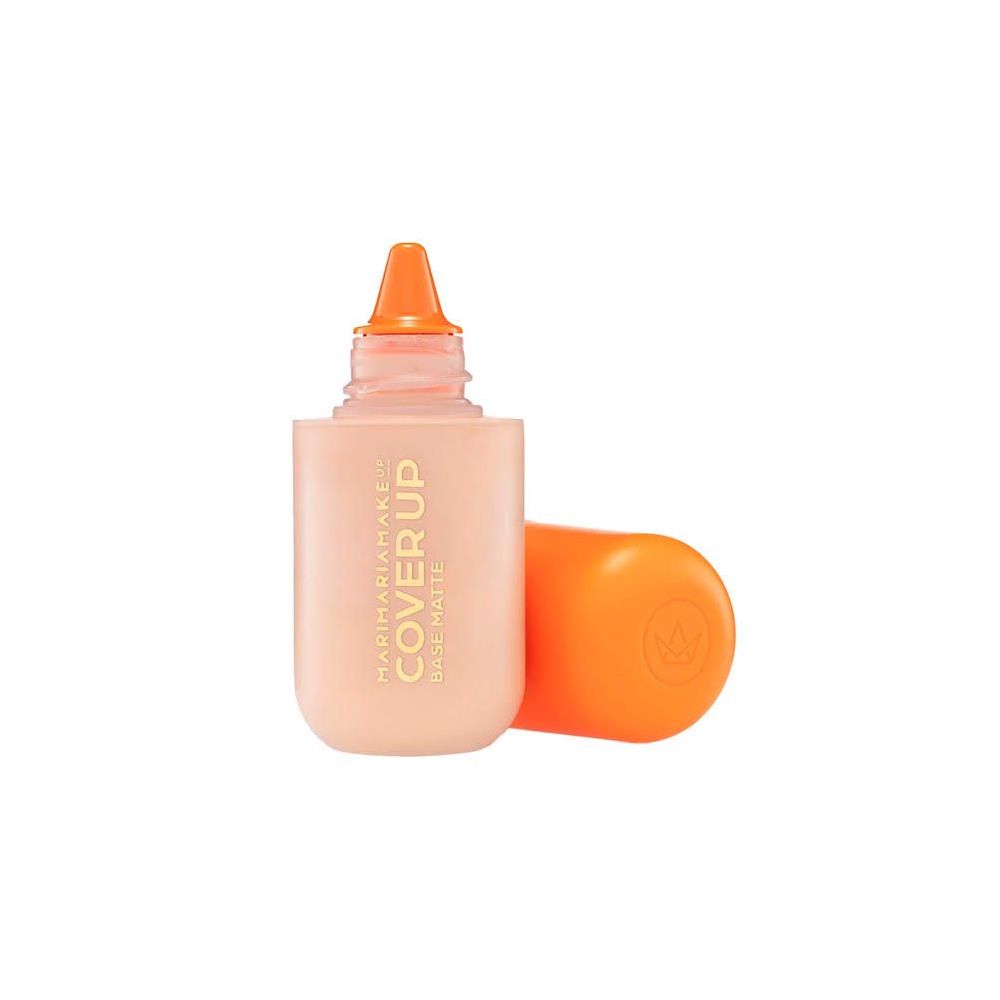 Base líquida. Mari Maria Cover Up FPS35 possui acabamento matte que deixa a pele uniforme, sem craquelar, além de ser resistente à água e suor.
