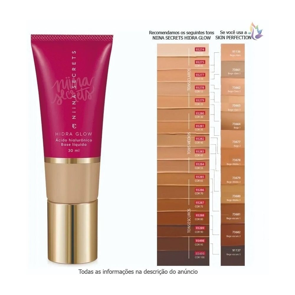 A Base Secrets Hidra Glow contém Ácido Hialurônico de última geração que deixa a pele hidratada* e radiante como uma pétala.