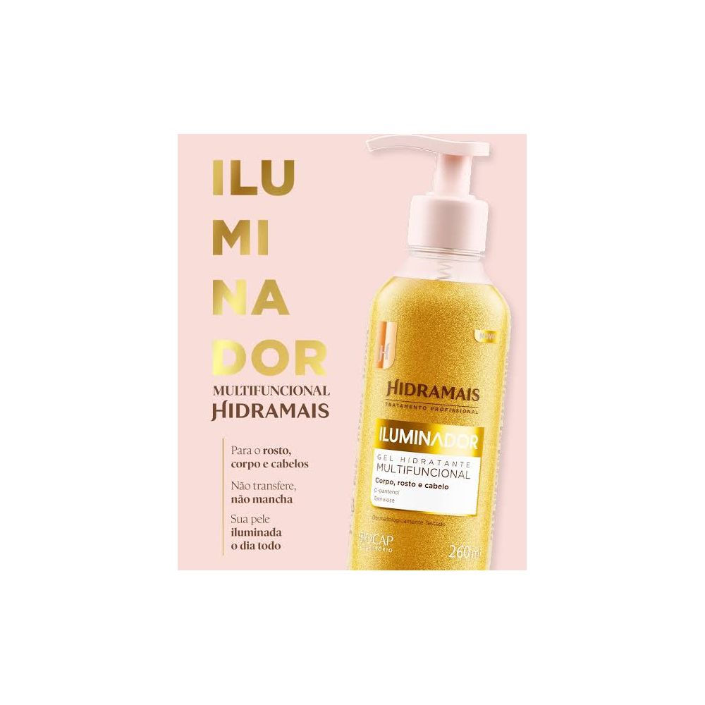 Iluminador multifuncional com partículas douradas. Hidrata, dá brilho e promove glow sem transferir ou deixar a pele oleosa.