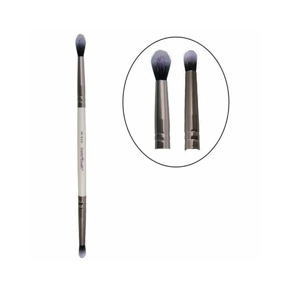 Pincel Duplo Macrilan W510 possui em uma ponta o pincel para detalhes, para aplicação de sombra nas áreas de mais difícil acesso ou que precisam de maior precisão, como o canto interno e externo dos olhos. Na outra ponta, o pincel oval para esfumar, suavisar e misturar cores nas pálpebras. Feito com cerdas especiais para uma aplicação suave e uma maquiagem impecável.