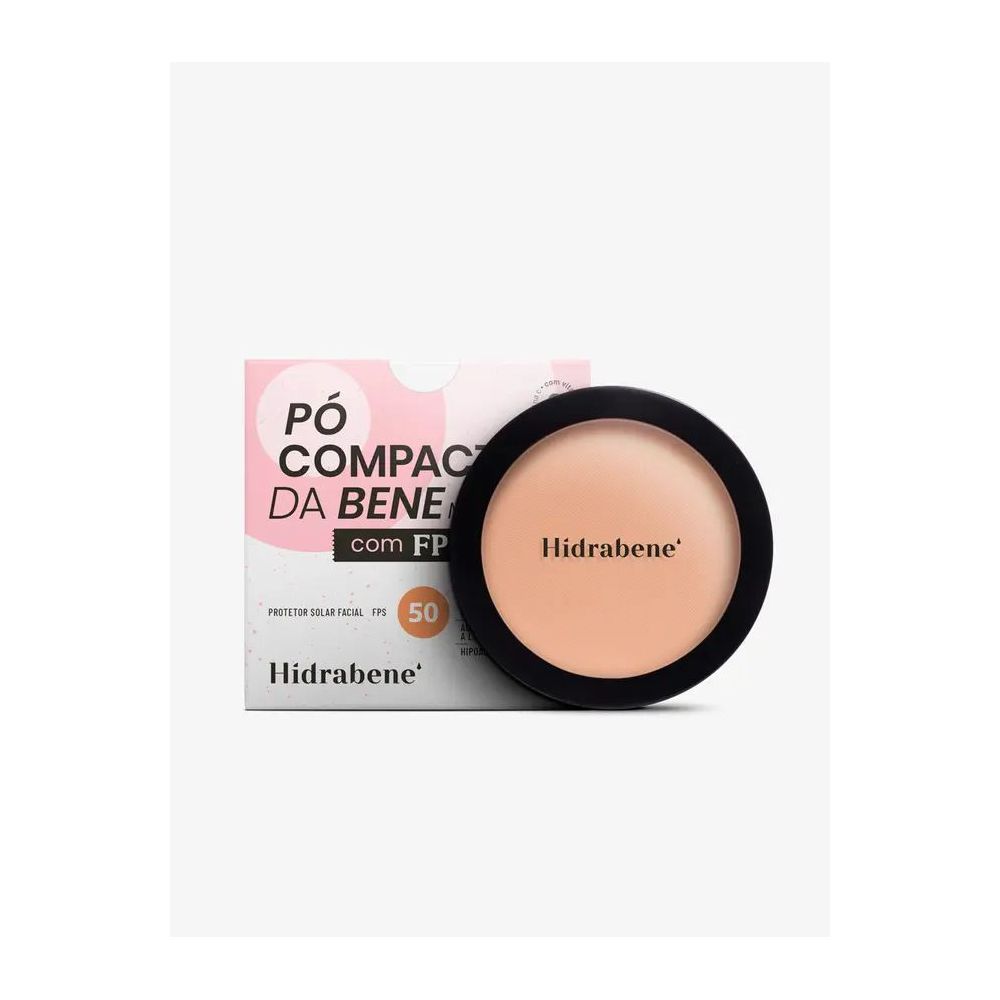 Pó compacto com proteção solar. Hidrabene Pó Compacto da Bene FPS 50 uniformiza o tom da pele, protege e tem ação antioxidante e multibeneficios.