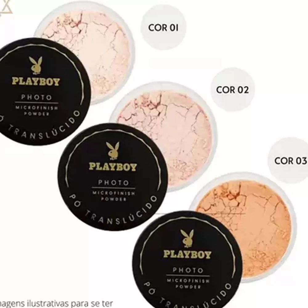 Pó facial translúcido ultrafino. Playboy Photo Microfinish Powder controla oleosidade, sela maquiagem e proporciona acabamento aveludado em fotos e vídeos.