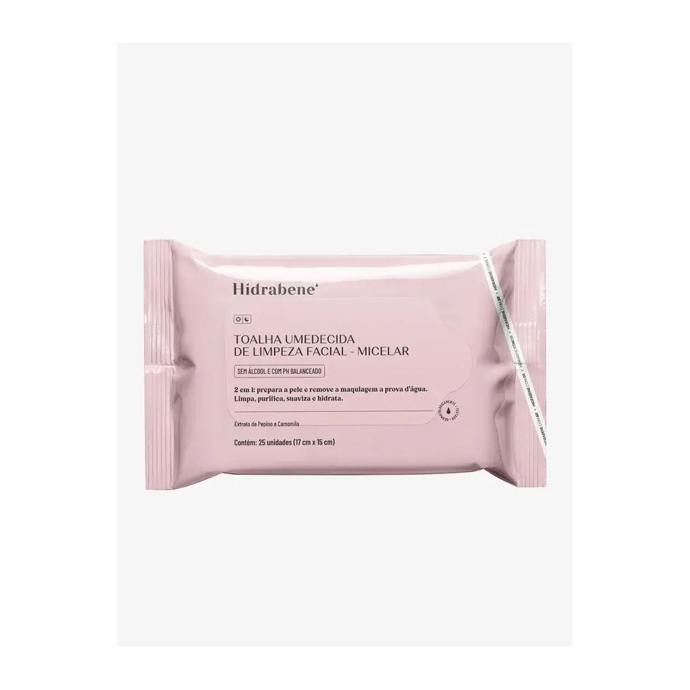 Toalha Umedecida descartável com ação 2 em 1 que prepara a pele e remove maquiagens à prova d’água.